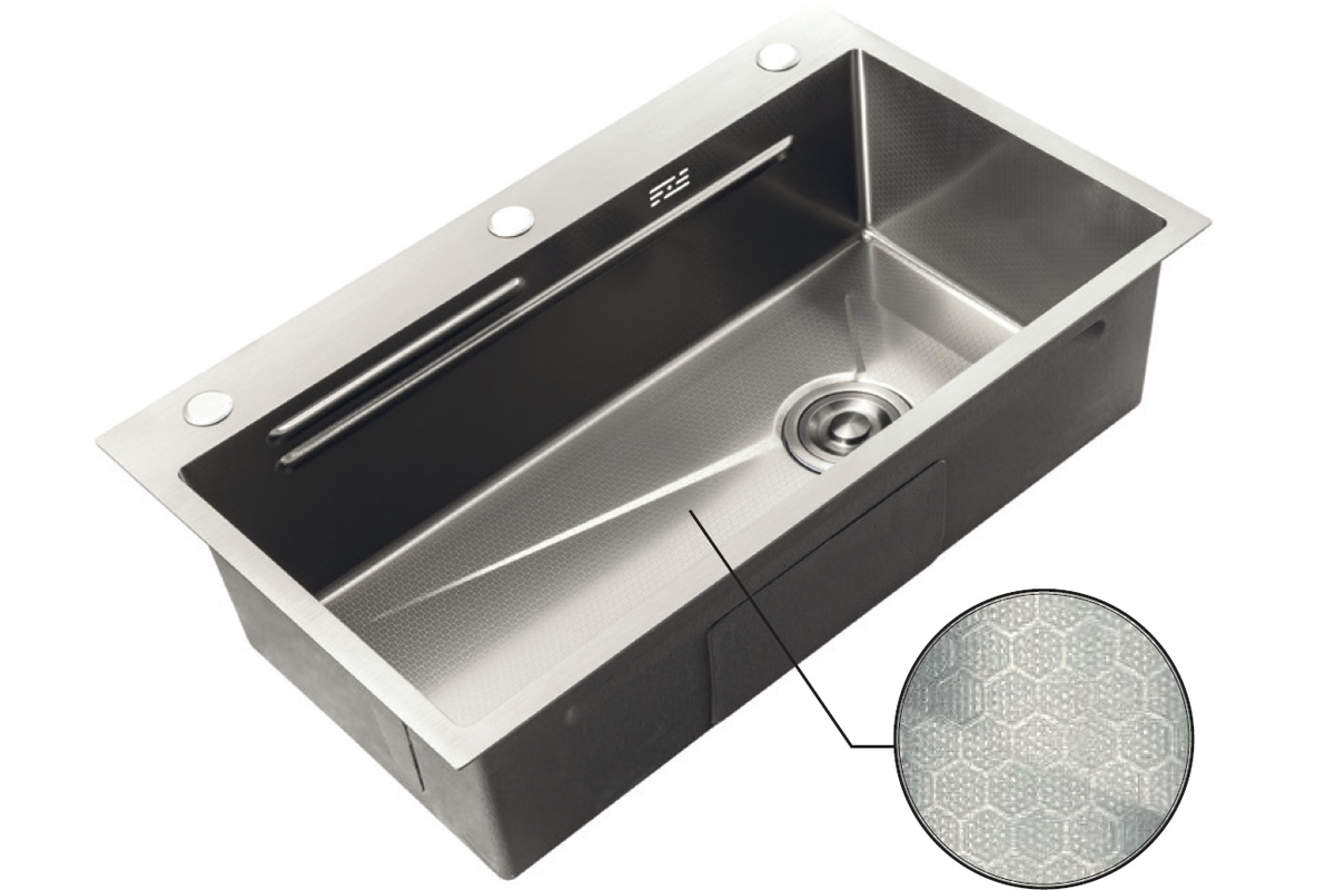 Мойка Zerix ZH7545-SET-05 DECOR NANO-SILVER (3.0/0.8) с нерж. стали, комплект (нержавейка) (ZM5584)